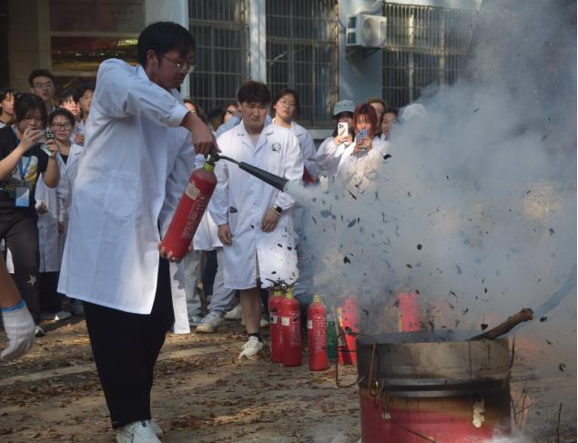 演练开始前,保卫处综治消防科对火灾发生的严重后果、火灾逃生指南、灭火器的使用、水带的铺设、水枪的连接以及消火栓的使用进行了详细讲解,并进行了现场示范操作。随着消防警报响起,师生们从实验楼内沿着消防疏散通道快速有序撤离至安全地带,真实模拟突发火灾应急逃生演练。同时,现场还进行了油盆灭火、室内消火栓出水等实操教学。活动中,全体教职和学生积极参与,有序配合,顺利完成演练。