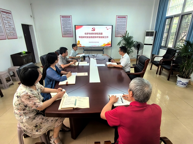 2025年9月29日14:40,学院党委在致理楼215室召开会议,专题研究安全稳定和平安建设工作。九三学社社员、副院长龚霞,学生党总支书记彭玉萌,实验室负责人张琳和行政办主任吴奎列席会议,会议由学院党委书记刘庆言主持。